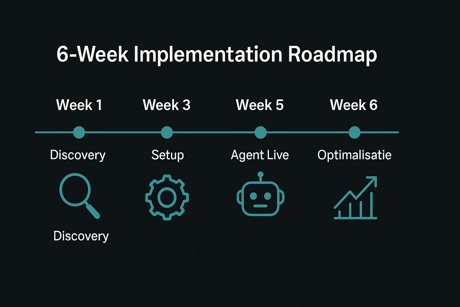 Binnen 2–6 weken staat uw systeem live — veilig, meetbaar en schaalbaar.